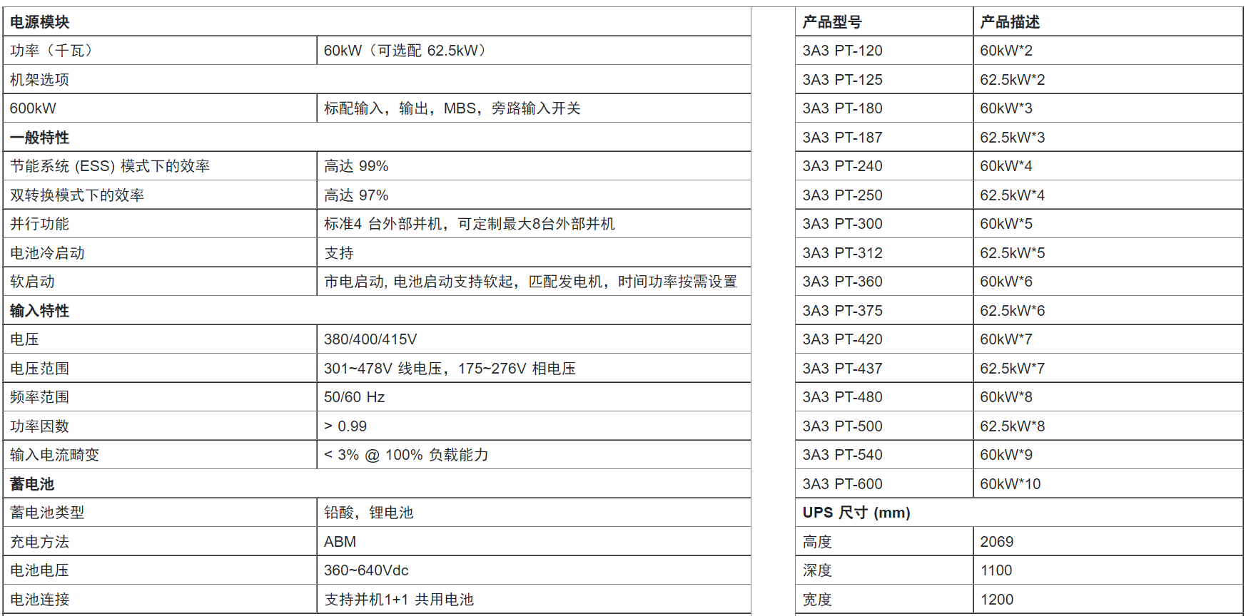 ARRAY 3A3 PT 系列(60kVA~600kVA) 集出色的效率和可靠性及美觀的設(shè)計(jì)于一身。這是一款節(jié)省空間、易于擴(kuò)展且通風(fēng)靈活的設(shè)備,部署與管理同樣簡單方便,是當(dāng)今數(shù)據(jù)中心的**三相白色或灰色空間解決方案。
